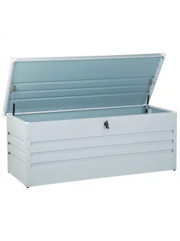 Wetterfeste, große Gartenkissenbox aus Metall in Hellgrau. In dieser hochwertigen, robusten verzinkten Stahltruhe finden Sie genügend Platz für all Ihre Garten-, Sport- oder Campingutensilien und schützen sie über das ganze Jahr vor jeglichen Wettereinflüssen. Der stabile, glatte Deckel lässt sich mit Hilfe des Drehgriff-Zylinderschlosses verschliessen und dank einer Gasdruckfeder leicht öffnen.Details: Typ: Truhe Farbe: Grau Farbton: Hellgrau Material: Stahl Finish: Galvanisiert Volumen: 600Dimensions: Tiefe: 70 cm Breite: 165 cm Höhe: 67 cm Gewicht: 31 kg Max. Belastung: 80 kgSie kaufen: 1 x KissenboxProduktvorteile: Klassisches Design, Stabile und solide Konstruktion, Speziell für die Nutzung im Außenbereich entworfen, UV-Beständigkeit, Wasserdicht dank hochwertiger Materialien, Abschliessbar zur sicheren Aufbewahrung, Fester Stand, auch auf unebenem Boden, Praktischer, großer StauraumMontage: Nicht montiert. 120-180 Min.Beständigkeit: Windbeständig, Schmutzbeständig, UV-beständig, RostbeständigBeständigkeit Text: UV-strahlenbeständige Möbel weisen eine erhöhte Beständigkeit gegen Verblassen oder Verfärbung auf. Wir empfehlen jedoch, dass Sie das Produkt bei Nichtgebrauch abgedeckt aufbewahren. Dies gewährleistet die maximale Lebensdauer der Möbel. Das Produkt wurde aus Materialien gefertigt, die eine hohe Fleckenbeständigkeit aufweisen, weshalb es zu keinen Verfärbungen kommen sollte oder diese leicht zu beseitigen sind. Bei der Fleckenentfernung sind die Pflegehinweise zu berücksichtigen. Dank eines entsprechenden Finish zeichnet sich das Produkt Oberfläche durch eine Rostbeständigkeit aus. Dies bedeutet, dass es im Freien genutzt werden kann. Werden die Möbel nicht genutzt, sollte entweder eine Abdeckung verwendet oder sie sollten an einem trockenen Ort gelagert werden. Dieses Produkt besitzt eine hohe Windbeständigkeit, weshalb es nicht umkippen oder seine Stabilität aufgrund von Windböen verlieren sollte.Pflegeanleitung:Stahl: 1.Mit milder Seife und Wasser reinigen. Keine säurehaltigen oder scheuernden Reiniger verwenden, da diese die Oberfläche beschädigen können 2.Auf Korrosion prüfen, insbesondere an beschädigten oder abgenutzten Stellen, und freiliegendes Metall zum Schutz mit zinkhaltiger Farbe behandeln 3.Zur Korrosionsvorbeugung Rinnen und Verbindungen sauber halten, stehendes Wasser vermeiden und bei feuchten Bedingungen verzinkten Stahl mit Kupfer oder Messing durch Kunststoff- oder Gummielemente isolieren 4.Bei Stahlteilen mit beweglichen Komponenten einen leichten Schmierstoff auftragen, um reibungslose Funktion und Rostschutz zu gewährleisten.