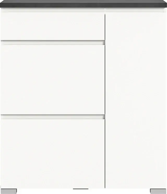 Maße ca. (B/T/H): 95/27/109 cm. 2 Klappen mt Schuhwalze, 1 Schubkasten, 1 Tür, bietet Platz für ca. 6 Schuhpaare. Durch das optionale LED Einbauprofil (Artikel 92629340) wird dieser Schuhschrank zum echten Hingucker in Ihrem Wohnbereich. Platzsparender Schuhschrank zur perfekten Organisation und Aufbewahrung Ihrer Schuhe. Das Möbel besteht aus FSC®-zertifiziertem Holzwerkstoff zum Schutz der Wälder