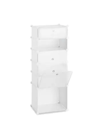 Ob Sandalen, Stiefel, kleine oder große Schuhe – in diesem praktischen Schuhregal finden sie alle Platz. Mindestens 12 Paar lassen sich in den 6 Fächern problemlos verstauen. Dabei kann die Schuhablage sowohl als offenes Regalsystem, als auch als geschlossener Schuhschrank genutzt werden. Durch das handliche Stecksystem kann das DIY-Regal blitzschnell und ohne zusätzliches Werkzeug aufgebaut, oder zwischen verschiedenen Varianten gewechselt werden. Bei Verschmutzungen lassen sich diese dank der praktischen Kunststoffoberfläche einfach mit einem feuchten Tuch entfernen. Das Steckregal ist in verschiedenen Farben erhältlich. Schuhregal mit 6 Fächern im Detail – Maße H x B x T: ca. 126 x 49 x 36,5 cm – Maße großes Fach H x B x T: ca. 35 x 45 x 35 cm – Maße je kleines Fach H x B x T: ca. 17 x 45 x 35 cm – Gewicht ca. 5 kg – Jedes Fach kann mit ca. 3,5 kg belastet werden – Material: Kunststoff, Metall – Verschiedene Farben erhältlichEnthaltene Teile des Regalsystems – 8 Wände je ca. 35 x 45 cm – 1 Tür ca. 35 x 45 cm – 2 Wände je ca. 35 x 35 cm – 10 Wände je ca. 35 x 17 cm – 5 Wände je ca. 45 x 17 cm – 5 Türen je ca. 45 x 17 cm – 30 Verbindungsstücke Praktisches Steckregal mit viel Stauraum – 6 Ebenen bieten Platz für mind. 12 Paar Schuhe – Unkomplizierter Aufbau durch einfaches Stecksystem – Kann in verschiedenen Varianten zusammengebaut werden – Als offenes Regalsystem oder geschlossener Schrank nutzbar – Einfache Reinigung mit feuchtem Tuch Lieferumfang – Schuhregal in Einzelteilen – Beispielhafte Bauanleitung – Holzhammer – Dekoartikel sind im Lieferumfang nicht enthalten