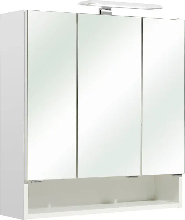 Der Spiegelschrank bietet mit den Maßen B65 x T20 x H70 cm ausreichend Stauraum hinter drei Spiegeltüren. Die 3 Einlegeböden sorgen für eine optimale Organisation im Badezimmer.. Der 3-türige Spiegelschrank inkl LED-Beleuchtung verfügt über eine Schalter/Steckdosen-Kombination für bequemes Aufladen und Verwenden von elektronischen Geräten.. Die LED-Beleuchtung sorgt für eine helle Ausleuchtung des Gesichts beim Schminken oder Rasieren, mit einer Leistung von 230V und 713LM.. IP44 zertifiziert für den Einsatz im Badezimmer und eine Stromzuleitungslänge von ca. 50 cm für flexible Installation.. Die zerlegten Möbel können, mit der Montageanleitung im Paket, schnell und einfach aufgebaut werden. Deutscher Hersteller und deutsche Produktion – Qualität made in Germany