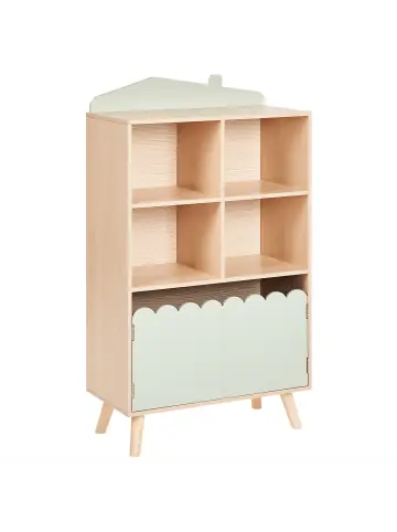 Regal mit Stauraum. Dieses entzückende Bücherregal in Form eines Hauses verleiht jedem Kinderzimmer einen verspielten und stilvollen Touch. Die robuste MDF-Konstruktion und die Holzfüße sorgen für Stabilität und Langlebigkeit. Mit seinen praktischen Türen für zusätzlichen Stauraum und zwei geräumigen Regalen für Bücher oder Spielzeug verbindet es Funktionalität mit Charme. Das vielseitige Design passt zu jeder Einrichtung und setzt spielerische Akzente.Details: Typ: Bücherregal Farbe: Braun Material: MDF-Platte Zusätzliches Material: Kiefernholz Gestellmaterial: Holz Anzahl Einlegeböden: 2 Finish: MelaminDimensions: Tiefe: 30 cm Breite: 60 cm Höhe: 105 cm Gewicht: 15 kg Max. Belastung pro Fach: 10 kg Max. Belastung der Oberplatte: 10 kgSie kaufen: 1 x RegalProduktvorteile: Stauraum in leicht erreichbarer Höhe für Kinder, Dekorativ und zugleich funktional, Passt harmonisch in jedes Kinderzimmer, Ein einzigartiger Hingucker, Schutzkappen zum Schutz des BodensMontage: Nicht montiert. 45 – 60 Min.Zusatzinformationen: Bitte beachten: Aus Sicherheitsgründen muss das Produkt an der Wand montiert werden.Pflegeanleitung:MDF-Platte: 1.Bitte ausschließlich milde Reinigungsmittel und weiche Tücher verwenden. Feuchte Stellen sofort trocken reiben.Kiefernholz: 1.Bitte ausschließlich milde Reinigungsmittel und weiche Tüchern verwenden. Dabei immer in Richtung der Maserung abwischen 2.Sofort nach der Reinigung abtrocknen, um zu verhindern, dass sich Wasser auf dem Produkt absetzt 3.Nur bei geölten Holzartikeln befolgen: Sie sollten nach einiger Zeit nachgeölt werden, damit sie lange in einem guten Zustand erhalten bleiben.