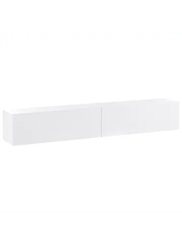 Schmaler TV-Hängeschrank mit 2 Klapptüren. Bereichern Sie Ihre Fernsehwand mit diesem stilvollen, dennoch geräumigen Lowboard. Da der TV-Schrank an der Wand montiert wird, können Sie ihn flexibel auf jeder Wunschhöhe anbringen. Er besitzt eine robuste Konstruktion, so können Sie ihn nicht nur als einfachen Hängeschrank nutzen, sondern auch einen bis zu 70-Zoll-Fernseher darauf abstellen. Die ergänzende Melaminbeschichtung sorgt dafür, dass der TV-Hängeschrank äußerst widerstandsfähig gegen Abrieb und Kratzer ist. Zudem besitzt er zwei geschlossene Fächer, in denen Sie Elektrogeräte und andere Gegenstände ordentlich unterbringen können. Sowohl die stilvolle einfarbige Optik als auch die grifflosen Fronten sorgen für einen angesagten Look, der sicherlich zu jeder modernen Raumgestaltung passen wird.Details: Typ: TV-Möbel Farbe: Weiß Material: Faserplatte Tischplattenmaterial: Holzwerkstoff Türöffnungsarten: Aufklappbar Schubladen: Nein Finish: Melamin Türanzahl: 2Dimensions: Tiefe: 32 cm Breite: 180 cm Höhe: 30 cm Gewicht: 23 kg Max. Belastung pro Fach: 10 kg Max. Belastung der Oberplatte: 20 kgSie kaufen: 1 x TV-MöbelProduktvorteile: Gut kombinierbar mit vielen Einrichtungsstilen, Holzähnliches Finish für einen möglichst naturnahen Look, Elegantes Design, Pflegeleichtes und strapazierfähiges Material, Viel StauraumMontage: Nicht montiert. 45 – 60 Min.Zusatzinformationen: Um die Haltbarkeit und die Ästhetik der Arbeitsplatte zu erhalten, sollte man Platzsets und Untersetzer verwenden und feuchte Stellen schnellstmöglich trocken wischen, um Produktschäden zu vermeiden. Um sicherzustellen, dass die Konstruktion stabil und die Nutzungssicherheit gewährleistet ist, sollte man 2 Wochen nach dem Zusammenbau überprüfen, ob die Ware auch korrekt montiert wurde. Außerdem ist alle 3 Monate zu prüfen, ob die Schrauben richtig festgezogen sind.Pflegeanleitung:Faserplatte: 1.Bitte ausschließlich milde Reinigungsmittel und weiche Tücher verwenden. Feuchte Stellen sofort trocken reiben.