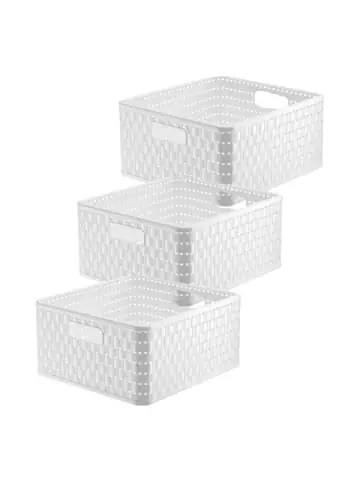 Aufbewahrungsbox „Country“ in Rattan-Optik von Rotho Der wohnliche Look der Aufbewahrungskörbe von Naturmaterialien verbunden mit der Pflegeleichtigkeit von Kunststoff – das ist die ideale Aufbewahrungslinie für den Wohnbereich! Die Körbchen Country sind eine Augenweide. Sie fügen sich in ein naturnahes Wohnambiente im Landhausstil ebenso harmonisch ein, wie in eine moderne Umgebung. Universeller Einsatz im ganzen Haus Die Dekokörbe im Rattan-Design können im ganzen Haushalt eingesetzt werden. Ob in Küche, Bad, Wohnzimmer oder als Spielzeugkiste im Kinderzimmer, sie sind überall beliebte Ordnungsschaffer, da sie einfach abwaschbar und bei Bedarf sogar spülmaschinentauglich sind. Produktinformationen: – Aufbewahrungssystem im Rattan-Look – Aus hochwertigem Kunststoff (PP), BPA-frei – Einfach zu reinigen – Sicher stapelbar – Erhältlich in verschiedenen Grössen und Ausführungen – Hergestellt in der Schweiz