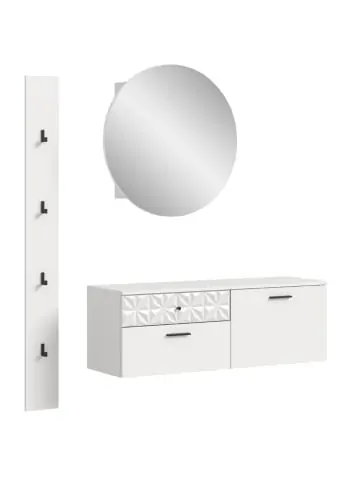 Prisma Garderobenmöbel Set Weiß. Haken Stück: 4. Diese elegante Garderobenkombination (B/H/T 141x192x34 cm) vereint modernen Stil mit hoher Funktionalität. Ideal für Flur, Diele oder Hauswirtschaftsraum, bietet dieses Möbelstück nicht nur praktische Stauraumlösungen, sondern setzt auch stilvolle Akzente in Ihrem Zuhause. Produktmerkmale im Überblick Zeitlose Eleganz: Die Kombination aus Weiß Nachbildung und Hochglanz-Absetzungen verleiht dieser Garderobe einen modernen Look, der in jedem Raum einen frischen Akzent setzt. Praktische Maße: Mit den Maßen B/H/T 141x192x34 cm ist diese 3-teilige Kombination perfekt für mittelgroße bis große Räume geeignet. Rillenoptik: Die hochwertige Rillenstruktur unterstreicht das zeitlose Design und sorgt für eine edle Ausstrahlung. Hochwertige Materialien und einfache Pflege Diese Garderobenkombination überzeugt durch langlebige und robuste Materialien, die einfach zu reinigen sind. Die Oberflächen bleiben auch bei täglichem Gebrauch ansehnlich und erfordern nur minimalen Pflegeaufwand. Nachhaltige Produktion Gefertigt aus FSC®-zertifiziertem Holzwerkstoff, unterstützt dieses Möbelstück einen verantwortungsvollen Umgang mit natürlichen Ressourcen und sorgt gleichzeitig für ein langlebiges und hochwertiges Produkt. Ein Highlight für Ihren Eingangsbereich Ob als stilvoller Blickfang in der Diele oder als funktionales Möbelstück im Hauswirtschaftsraum diese 3-teilige Garderobenkombination bietet Ihnen optimalen Stauraum und ein harmonisches Design, das sich mühelos in jedes Wohnkonzept einfügt.