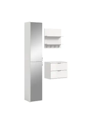 Das dreiteilige Eingangsmöbel-Set ProjektX ist eine clevere und platzsparende Lösung, die Funktionalität und moderne Ästhetik vereint. Es besteht aus einem schlanken Hochschrank mit Spiegeltüren, einer Schuhbank mit zwei Schubladen und einer Wandgarderobe mit vier Haken und zwei Ablageflächen.Der Hochschrank bietet Platz für Oberbekleidung und Accessoires, und dank der Spiegelfront haben Sie vor dem Verlassen des Hauses schnell alles im Blick. Die Schuhbank bietet Stauraum und eine praktische Sitzfläche. Die dazugehörige Garderobe ermöglicht das schnelle Aufhängen von Jacken und Taschen, während die beiden Ablageflächen als Dekoration oder zur Aufbewahrung kleiner Gegenstände genutzt werden können.Das Design in Hochglanzweiß sorgt für einen klaren, eleganten Look, der zu vielen Eingangsbereichen passt. Das gesamte Set wird aus FSC®-Mix-zertifizierten Materialien (FSC-C170479) hergestellt, die eine verantwortungsvolle Forstwirtschaft unterstützen.