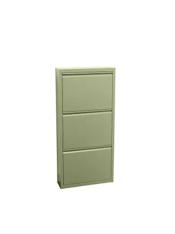 Schuhschrank Pisa mit 3 Türen in Metallgrün. Komplett montiert wird ein Schuhschrank in der Farbe Grün geliefert, der sowohl Stil als auch Funktionalität in Ihr Zuhause bringt. Komplett montiert geliefert. RAL 6013 grün. Schublade innen: B46/L29/T13 cm. Kann auf den Boden gestellt oder an die Wand gehängt werden. Einzeln verwendbar. Türen öffnen sich gleichzeitig. Dieses Produkt wurde mit viel Liebe zum Detail hergestellt, was sowohl Ästhetik als auch hohe Haltbarkeit gewährleistet. Bei der Gestaltung wurde sowohl auf Funktionalität als auch auf Stil geachtet, was es zur perfekten Wahl für jeden Raum in Ihrem Zuhause macht. Die verwendeten Materialien sind von hoher Qualität, was dem Produkt eine lange Lebensdauer verleiht und dafür sorgt, dass es dem täglichen Gebrauch standhält. Ob zur Aufbewahrung oder als dekorative Ergänzung, dieses Produkt wertet Ihre Einrichtung auf und bringt zusätzlichen Komfort und Eleganz in Ihr Zuhause.