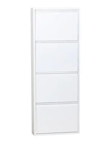 Schuhschrank Pisa mit 4 Türen aus weißem Metall. Komplett montiert wird ein Schuhschrank in der Farbe Nan geliefert, der sowohl Stil als auch Funktionalität in Ihr Zuhause bringt. Unser Schuhschrank Pisa mit 4 Türen aus weißem Metall ist in einem schlichten und stilvollen Design gefertigt. Die Möbel werden montiert geliefert und sind bei Erhalt sofort einsatzbereit. Schöner Schuhschrank aus pulverbeschichtetem Metall, in dem Sie Ihre Schuhe platzsparend aufbewahren können. Mit diesem intelligenten Schuhschrank können Sie die Schuhaufbewahrung im Eingangsbereich, im Hauswirtschaftsraum oder im Schlafzimmer verwalten. Alle Türen öffnen sich gleichzeitig. Sie können den Schuhschrank auf den Boden stellen und an der Wand befestigen oder den Schuhschrank an die Wand hängen. Mit unseren Pisa-Schuhschränken können Sie in Ihrem Zuhause Ihren ganz persönlichen Stil kreieren zusammen mit einigen schönen Wohnaccessoires. Sie sind Teil der Mode und Teil der neuen Wohntrends, wie Sie sie in Zeitschriften und Wohnmagazinen sehen. Dieses Produkt wurde mit viel Liebe zum Detail hergestellt, was sowohl Ästhetik als auch hohe Haltbarkeit gewährleistet. Bei der Gestaltung wurde sowohl auf Funktionalität als auch auf Stil geachtet, was es zur perfekten Wahl für jeden Raum in Ihrem Zuhause macht. Die verwendeten Materialien sind von hoher Qualität, was dem Produkt eine lange Lebensdauer verleiht und dafür sorgt, dass es dem täglichen Gebrauch standhält. Ob zur Aufbewahrung oder als dekorative Ergänzung, dieses Produkt wertet Ihre Einrichtung auf und bringt zusätzlichen Komfort und Eleganz in Ihr Zuhause.