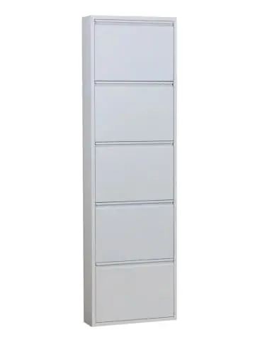 Schuhschrank Pisa mit 5 Türen aus weißem Metall. Komplett montiert wird ein Schuhschrank in der Farbe Nan geliefert, der sowohl Stil als auch Funktionalität in Ihr Zuhause bringt. Unser Schuhschrank Pisa mit 5 Türen aus Metall in Weiß ist in einem schlichten und stilvollen Design gefertigt. Die Möbel werden montiert geliefert und sind bei Erhalt sofort einsatzbereit. Schöner Schuhschrank aus pulverbeschichtetem Metall, in dem Sie Ihre Schuhe platzsparend aufbewahren können. Mit diesem intelligenten Schuhschrank können Sie die Schuhaufbewahrung im Eingangsbereich, im Hauswirtschaftsraum oder im Schlafzimmer verwalten. Alle Türen öffnen sich gleichzeitig. Sie können den Schuhschrank auf den Boden stellen und an der Wand befestigen oder den Schuhschrank an die Wand hängen. Mit unseren Pisa-Schuhschränken können Sie in Ihrem Zuhause Ihren ganz persönlichen Stil kreieren zusammen mit einigen schönen Wohnaccessoires. Sie sind Teil der Mode und Teil der neuen Wohntrends, wie Sie sie in Zeitschriften und Wohnmagazinen sehen. Dieses Produkt wurde mit viel Liebe zum Detail hergestellt, was sowohl Ästhetik als auch hohe Haltbarkeit gewährleistet. Bei der Gestaltung wurde sowohl auf Funktionalität als auch auf Stil geachtet, was es zur perfekten Wahl für jeden Raum in Ihrem Zuhause macht. Die verwendeten Materialien sind von hoher Qualität, was dem Produkt eine lange Lebensdauer verleiht und dafür sorgt, dass es dem täglichen Gebrauch standhält. Ob zur Aufbewahrung oder als dekorative Ergänzung, dieses Produkt wertet Ihre Einrichtung auf und bringt zusätzlichen Komfort und Eleganz in Ihr Zuhause.