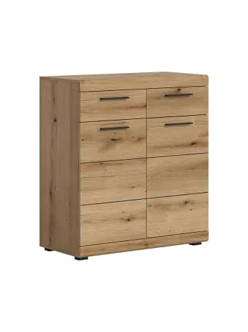 Der Schuhschrank Scout vereint Funktionalität mit einem warmen, natürlichen Look in wunderschönem Eichendekor. Die robuste Konstruktion verfügt über zwei praktische Schubladen oben und zwei Türen mit geräumigem Schuhfach dahinter. So bleibt im Eingangsbereich oder Schlafzimmer Ordnung.Die schwarzen Griffe und die sichtbare Holzstruktur verleihen dem Schrank einen modernen und rustikalen Touch, der perfekt in nordische oder ländliche Einrichtungsstile passt. Der Schrank bietet Platz für Schuhe und Accessoires, und die stabile Oberfläche eignet sich für dekorative Elemente wie Tabletts, Lampen oder Pflanzen.Das Möbelstück besteht aus FSC®-Mix-zertifizierten Materialien (FSC-C170479), die einen verantwortungsvollen Umgang mit Forstressourcen gewährleisten. Scout ist eine praktische und stilvolle Lösung, die Form und Funktion zu einem harmonischen Ganzen vereint.
