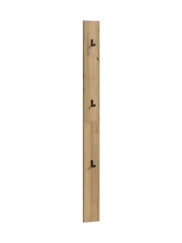 Naro Wandgarderobe 3 Haken Eiche Dekor. Haken Stück: 3. Das schmale Hakenpaneel in Evoke Oak Nachbildung (15 x 160 x 2 cm) bietet mit drei Haken praktischen Stauraum für Jacken, Taschen oder Schals. Das Montagematerial zur Wandbefestigung ist im Lieferumfang enthalten, sodass du das Paneel schnell und einfach anbringen kannst. Die pflegeleichte Oberfläche sorgt für eine einfache Reinigung und eine moderne Optik. Durch die Kombination mit weiteren Typen der Serie kannst du deinen Eingangsbereich funktional und stilvoll gestalten. Dieses Hakenpaneel ist die perfekte Lösung, um Ordnung zu schaffen und gleichzeitig eine warme, natürliche Atmosphäre zu schaffen.