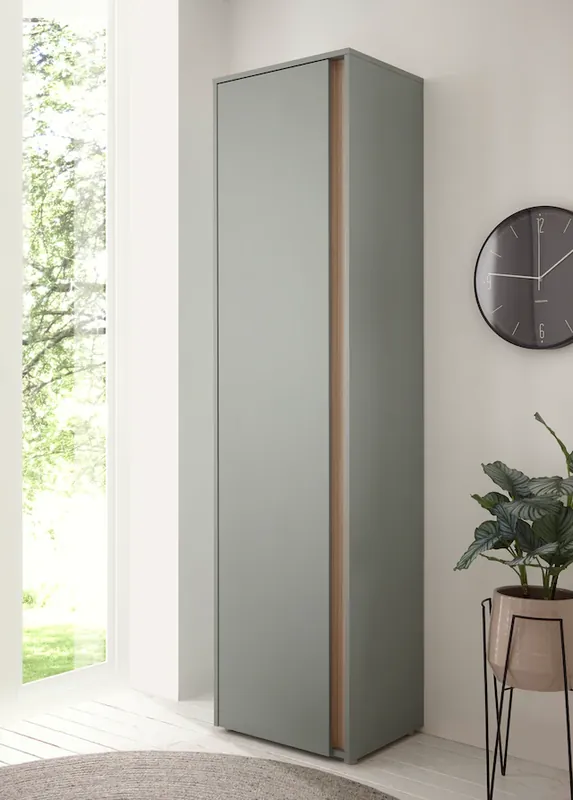 Der Garderobenschrank ist aus FSC-zertifizierten Holzwerkstoff gefertigt und in vier Farben erhältlich.. Hinter der Tür befindet sich ausreichend Stauraum, welcher Platz für persönliche Gegenstände bietet und damit für Ordnung im Eingangsbereich sorgt.. Ein zeitloses Farbspiel sorgt für einen echten Hingucker im Eingangsbereich und lädt zum Verweilen ein.. Das moderne Design sorgt für einen Wohlfühlcharakter und vereint Funktionalität und Design.. Artikelmaße (aufgebaut): 50/40/200 cm (B/T/H)