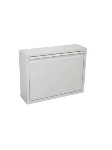 Moderner Metallschuhschrank komplett aus Metall, farbig pulverbeschichtet, mit einer Klappe. Dieser Schuhklapper lässt sich problemlos übereinander stapeln, je nach Bedarf und Platz. Hinter der aufklappbaren Klappe ist Platz für ca. 2 Paar Schuhe bis Größe max. 44, ideal Schuhgröße 43. Bei Bedarf können größere Größen auch schräg eingestellt werden. Wandmontage notwendig. Wenn mehrere Schuhklapper übereinander gestapelt werden reicht einmal Wandmontage, z. B. am obersten Element. Lieferung vom Schuhklapper erfolgt montiert. Maße ca. cm: Breite 50 cm, Tiefe 15 cm, Höhe 38 cm. Innenmaße ca. Breite 44 x Tiefe 7,5 x H. 31 cm. Hinweis, wenn stapelbar, dann sind die Elemente sehr stark miteinander verbunden, so dass die nur durch zwei Personen, mit etwas Kraftaufwand wieder auseinander gezogen werden können. Lieferbar sind diese Schuhklapper in drei trendigen Farben. Siehe auch Kombinationsbilder mit zwei oder vier Schuhklappschränke, farblich individuell zusammengestellt.- Pflegeleichte Oberflächen- komplett aus Metall- Montiert- nur ca. 15 cm tief