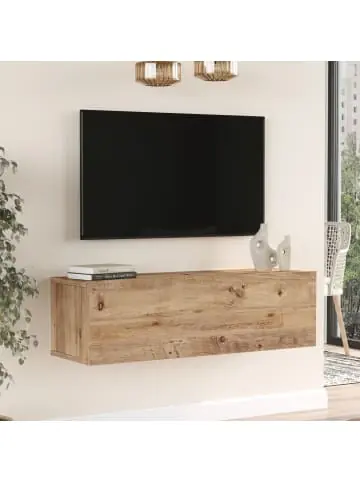 Fernsehtisch Dieser dekorative und praktische Fernsehtisch eignet sich perfekt für jeden Haushalt. Produktdetails: – Stilvolles und zeitloses Design – Mit einer Schranktür – Schneller und einfacher Aufbau Material: Spanplatte, melaminbeschichtet Maße (HxBxT): 29,5 x 100 x 31,5 cm Farbe: Eiche rustikal Lieferumfang: 1 x Fernsehtisch Markenware aus dem Hause: [en.casa]
