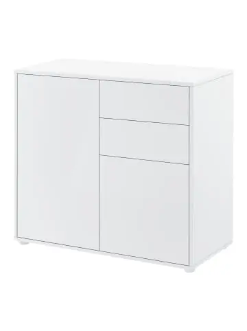 Sideboard Dieses dekorative und praktische Sideboard eignet sich perfekt für jeden Haushalt. Produktdetails: – Stylisches Sideboard mit 2 Schubladen und 2 Schranktüren – Vielseitig nutzbarer Stauraum – Müheloses Öffnen, indem auf die Tür beziehungsweise die Schublade gedrückt wird Maße: – Gesamt (HxBxT): 74 x 79 x 36 cm – Schublade Innenmaße (HxBxT): je 12 x 31,5 x 28,5 cm – Schubladenfront Höhe: je 14,8 cm – Schrankfach Innenmaße (HxBxT): je 36,3 x 37 x 33 cm – Schranktürfront unter den Schubladen Höhe: 37,5 cm – Große Schranktürfront Höhe: 68,3 cm Material: Spanplatte Farbe: Weiß, hochglanz Lieferumfang: 1 x Sideboard Markenware aus dem Hause: [en.casa]