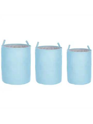 Runde, handgefertigte Wäschekörbe mit Kordelzügen und praktischen Tragegriffen. Diese vielseitigen Aufbewahrungskörbe sind die perfekte Lösung, um in Ihren Wohnräumen für Ordnung und Sauberkeit zu sorgen. Die Wäschesammler bestehen auch hochwertigen Stoffen, was sie sowohl funktionell als auch pflegeleicht macht. Die Körbe können dank des praktischen Kordelzugs leicht verschlossen werden, so sind die Modelle geruchsneutral. Dabei können Sie das Set für Ihre Wäsche, das Spielzeug Ihrer Kleinen oder viele andere Dinge, die nicht gebraucht werden, nutzen und all diese Sachen ganz einfach in den Körben blickdicht verstecken.Details: Typ: Wäschekörbe Farbe: Blau Farbton: Hellblau Material: Stoff Zusätzliches Material: Baumwolle Zusammenstellung: 50 % Polyester Form: Rund Handgefertigt: JaDimensions: Tiefe: 39/36/34 cm Breite: 39/36/34 cm Höhe: 48/47/45 cm Gesamtmasse: 39x39x48 Gewicht: 1.28 kgSie kaufen: 3 x KorbProduktvorteile: Dekorativ und zugleich funktional, Klassisches Design, Besonders pflegeleicht und langlebig, Handgefertigte Präzision, Grosszügiger StauraumMontage: Benötigt keine MontagePflegeanleitung:Stoff: 1.Flecken können mit einem Polsterreiniger, einem angefeuchteten Schwamm oder milden Reinigungsmitteln entfernt werden 2.Oberflächen nur mit geeignetem Aufsatz vorsichtig absaugen.