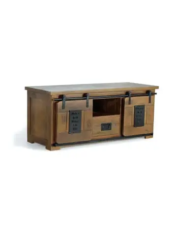 TV-Möbel im Industrial-Stil aus Mangoholz, eine perfekte Verbindung von Funktionalität und Ästhetik. Mit 2 Schiebetüren und 1 Schublade bietet es praktische Aufbewahrung. Maße: 55 x 130 x 50 cm. Verpackung: 61 x 136 x 56 cm. Gewicht: 40 kg. Naturholz und Handarbeit, daher mögliche Abweichungen in Farbe und Maserung. Wood