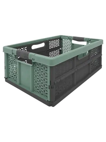 Faltbare Kiste 32l mit Gummigriffen – universelles Volumen und solide VerarbeitungUniverselles Volumen: Die faltbare Kiste CASE mit einem Volumen von 32 Litern eignet sich ideal zur Aufbewahrung verschiedener Gegenstände im Haus, Auto oder Vorratsraum. Dank des großen Volumens bietet sie Platz für viele Dinge und hilft, Ordnung zu halten. Solide Verarbeitung: Hergestellt aus hochwertigem Kunststoff (PP – Polypropylen) ist die Kiste langlebig und widerstandsfähig. Die maximale Belastung von 30 kg sorgt für eine sichere Aufbewahrung schwererer Gegenstände. Einfacher Transport: Die Gummigriffe bieten einen sicheren und bequemen Halt, was das Tragen der Kiste selbst bei voller Beladung erleichtert. Ideal für den Transport von Einkäufen oder Werkzeugen. Kompakte Aufbewahrung: Die Kiste ist faltbar, was Platz spart, wenn sie nicht verwendet wird. Im zusammengeklappten Zustand misst sie nur 49,5 x 35 x 5,6 cm, was eine einfache Aufbewahrung im Schrank oder Kofferraum des Autos ermöglicht. Ästhetisches Design: Die Kiste CASE ist in zwei Farben – Grau und Grün – erhältlich und präsentiert sich nicht nur funktional, sondern auch ästhetisch in jedem Raum. Die durchbrochenen Muster verleihen ihr Eleganz und Leichtigkeit.