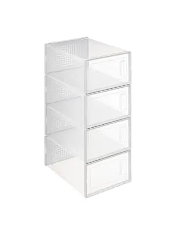Durchsichtige Schuhboxen mit seitlichen Türen – praktische und ästhetische Aufbewahrung von SchuhenPraktische Aufbewahrung: Die durchsichtigen Schuhboxen STAK ermöglichen eine bequeme und ästhetische Aufbewahrung von bis zu 4 Paar Schuhen. Dank des transparenten Materials findest du schnell das benötigte Paar. Einfacher Zugang: Die Boxen sind mit seitlichen Türen ausgestattet, die ein schnelles und bequemes Öffnen ermöglichen. Das ist die ideale Lösung für Personen, die Wert auf Benutzerkomfort legen. Platzsparend und faltbar: Die Boxen sind faltbar, was eine einfache Aufbewahrung ermöglicht, wenn sie nicht verwendet werden. So sparst du Platz in deinem Zuhause. Staubschutz: Die Boxen sind staubdicht, was einen Schutz der Schuhe vor Staub und Schmutz bietet. Deine Schuhe werden immer wie neu aussehen. Hohe Materialqualität: Hergestellt aus Polypropylen (64%) sind die Boxen langlebig und widerstandsfähig gegen Beschädigungen. Die Abmessungen jeder Box betragen 33,5 x 23,2 x 14 cm, was die Aufbewahrung von Schuhen bis zur Größe 44 ermöglicht. Dieses Produkt darf sicher und in der vom Hersteller vorgesehenen Weise verwendet werden und ausschließlich gemäß den Anweisungen, Empfehlungen, Warnungen oder Sicherheitsinformationen, die auf dem Produkt oder seiner Verpackung angebracht oder beigefügt sind.