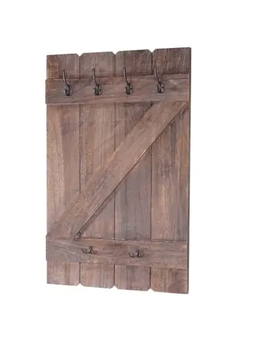– Markeninhaber TÜV-Süd QM zertifiziert mit Nr. 12 100 59626 TMS für Qualitäts-Management in Deutschland – Lieferumfang: 1x Wandgarderobe – Lieferung erfolgt ohne Dekoration – Kleiderhaken auf dem Paneel individuell anbringbar – 6 Haken – 12 Aufhängungsmöglichkeiten – Landhausstil – Auch als Tassenhalter verwendbarGesamtmaße (ca.):Höhe: 91 cmBreite: 60 cmTiefe (mit Kleiderhaken): 10 cmTiefe (ohne Kleiderhaken): 3 cmAbstand zwischen den Aussparungen: 57,5 cm Maße große Kleiderhaken (ca.):Höhe: 10 cmBreite: 3 cmTiefe: 5 cm Maße kleiner Kleiderhaken (ca.):Höhe: 3 cmBreite: 5 cmTiefe: 3 cm Material:Varianten braun shabby, weiß shabby, dunkelgrau shabby:Massives PaulowniaholzVariante weiß lackiert:MDF aus PaulowniaholzVariante Kiefer:Massives Kiefernholz Kleiderhaken aus Metall in Messing-Optik Hübsch hässlich, schick schäbig, Trash ist das neue Neu – und vor allem der allerletzte Schrei!! Wir präsentieren: den Shabby-Look. Lassen Sie sich von der lädiert anmutenden Oberfläche nicht täuschen, die Produkte dieser Serie sind qualitativ hochwertig verarbeitet und wurden nur aus den besten Materialien gefertigt. Die Holzelemente wurden hauptsächlich aus der Paulownie hergestellt, einem auch schon in Europa kultivierten Wertholzbaum, der aufgrund seiner Leichtigkeit und hohen Stabilität auch als das Aluminium der Hölzer bezeichnet wird. Und nun wurde diese Serie um eine Variante erweitert. Sie können zwischen dem Shabby-Look und dem lackierten Design mit glatter Oberfläche wählen. Sie wünschen von einer Wand mehr als nur Ihr Haus zusammen zu halten? Mit diesen Wandgarderoben können Sie jede Wand praktisch und dekorativ aufwerten! Durch den rustikalen Look wirkt jeder Flur, jede Diele oder auch das Schlafzimmer viel wohnlicher. Die Garderobe ist gut geeignet für alltägliche Kleidung. Sollten die Haken jedoch mit schweren Wintermänteln belastet werden, kann es sein, dass die Schrauben nicht halten und die Haken neu angeschraubt werden müssten. Sechs Haken mit insgesamt zwölf Aufhängungsmöglichkeiten pro Garderobenpaneel bieten Ihnen, Ihre Kleidung schnell greifbar und übersichtlich platzsparend unterzubringen. Wenn Ihnen jetzt noch kein geeigneter Platz dafür einfällt, überlegen Sie sich besser, welches Bild oder welchen Spiegel Sie auf den Dachboden verdammen können!Versandzustand: Teilmontiert–Sicherheitshinweise für Teilartikel mit Artikelnummer 80524 Dieser Artikel ist eine Wandgarderobe und sollte nur als solche verwendet werden. Der Artikel ist nur für den Innenbereich geeignet. Überladen Sie den Artikel nicht. Vorsicht: Verletzungsgefahr! Beim Bohren in Wand oder Decke auf Kabel, Rohre sowie Gas- und Wasser-leitungen achten!Vorsicht Erstickungsgefahr! Verpackungsmaterial, wie Plastikbeutel, gehören nicht in Kinderhände. Bitte von Babys und Kleinkindern fernhalten! Nicht über den Kopf ziehen! Vorsicht: Verschluckungsgefahr! Achtung dieser Artikel kann verschluckbare Kleinteile enthalten! Halten Sie die Kleinteile von Kindern fern! Prüfen Sie den Artikel regelmäßig alle 3-6 Monate auf Beschädigungen und gelöste Verbindungen. Ziehen Sie lose Schrauben wieder fest an! Sollten Beschädigungen entdeckt werden, darf der Artikel nicht mehr genutzt werden! Benutzen Sie diesen Artikel nur für die bestimmungsgemäße Verwendung, im technisch einwandfreien Zustand und für private Zwecke. Andere Verwendungen gelten als nicht bestimmungsgemäß und können zu schweren Verletzungen und Beschädigungen führen. Für aus bestimmungswidriger Verwendung entstandene Schäden übernimmt der Hersteller keine Haftung.Allgemeine Hinweise: Bitte lesen Sie alle Hinweise sorgfältig durch, bevor Sie den Artikel aufbauen und verwenden. Verwahren Sie die alle Sicherheitsinformationen und Aufbauanleitungen gut auf. Für Ihre eigene Sicherheit und die Ihres Produktes, befolgen Sie bitte die Sicherheitshinweise. Eine falsche Handhabung könnte zu ernsten Verletzungen, beschädigtem Eigentum oder sogar dem Tod hinauslaufen.Pflegehinweise: Saugen Polstermöbel regelmäßig ab. Hat der Artikel einen Bezug pflegen und reinigen Sie diesen entsprechend nach Material (Textil, Leder, Kunstleder). Besteht ihr Möbel aus Holz nutzen Sie einen Staubwedel zur Reinigung. Für alle anderen Oberflächen und bei stärkerem Schmutz können Sie ein nebelfeuchtes Baumwolltuch verwenden. Keinesfalls sollten Sie scharfe oder scheuernde Reiniger verwenden, diese können Schäden verursachen. Für Möbel im Bad: Wasser und Kondenswasser sofort abwischen! Entsorgungshinweise: Entsorgen Sie den Artikel umweltgerecht. Überlegen Sie Alternativen zu Entsorgung wie Spenden oder Verkaufen. Elektrische Artikel gehören nicht in den Hausmüll. Entsorgen Sie diese an einem Recyclinghof für elektrische und elektronische Altgeräte, weitere Informationen erhalten Sie bei Ihrer örtlichen Gemeindeverwaltung. Einlagerungshinweise: Der Artikel sollte trocken und sauber sein, verwahren Sie diesen geschützt in dem Karton in dem er geliefert wurde.