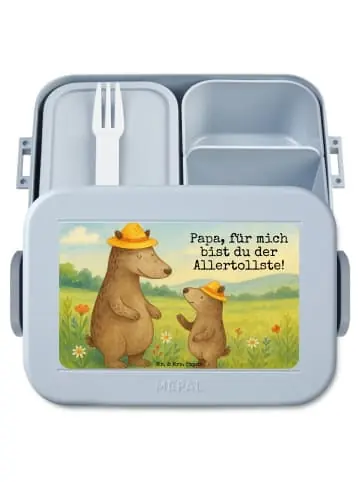MEPAL Bento-Box von Mr. & Mrs. Panda – praktisch, schön und durchdacht. Diese Bento-Box ist mit herausnehmbaren Einsätzen ausgestattet und wird inklusive Snackgabel geliefert, damit du deine Mahlzeiten sauber trennen kannst. Sie ist Element-frei, Freundlich und damit bestens für den täglichen Gebrauch geeignet. Schüssel und Einsätze sind mikrowellengeeignet (ohne Deckel), so kannst du Gerichte direkt erwärmen. Die Box ist spülmaschinenfest, was dir viel Zeit spart. Farben: Salbeigrün, Hellblau und Pastellrot – fröhliche Töne für jeden Tag.kompakte Abmessungen; Inhalt: großzügiges Fassungsvermögen; Gewicht: angenehm leicht. Material: PP, TPE, ABS. Druckfläche vorhanden – perfekt, wenn du die Box personalisieren möchtest. Die clevere Aufteilung mit mehreren Fächern verhindert das Vermischen von Speisen und sorgt für appetitliche Lunches. Ob du ein warmes Gericht, Salat oder Snacks mitnehmen willst – diese MEPAL Bento-Box vereint Funktionalität und Design in einem und macht die Mittagspause angenehmer.Herzliche Geschenke für Väter: Die Verbindung zwischen einem Vater und seinem Sohn ist unersetzlich, und das zeigen unsere beiden Bären liebevoll. Der größere Bär steht stolz mit seinem schicken gelben Hut, während der kleine Bär ihm bewundernd zusieht und dabei ganz klar denkt: „Papa, für mich bist du der Allertollste!“ Diese Worte umfassen die ganze Liebe und Verehrung, die Kinder für ihre Eltern empfinden. Egal, wo das Leben uns hinführt, die Liebe und Unterstützung eines Vaters bleiben immer ein zuverlässiger Anker. Nehmt euch heute einen Moment Zeit, um eure Papis zu umarmen, ihn zu schätzen und ihm zu sagen, wie viel er euch bedeutet.Vatertagsgeschenke: Die Familien Kollektion von Mr. & Mrs. Panda steht im Zeichen der Familie – dem Herzstück unseres Lebens. Jedes liebevoll gestaltete Motiv und jeder Spruch ist eine Feier der unzähligen FaZeichentten, die das ZuMenschmenleben mit unseren Liebsten mit sich bringt. Von herzlichen Botschaften für Mama und Papa, über freudige Anerkennung für Oma und Opa bis hin zu spielerischen Winken in Richtung der Geschwister. Diese Kollektion fängt das Wesen der Familie ein: Eine Mischung aus Liebe, Lachen, manchmal auch ein Hauch von Chaos, aber vor allem der Gewissheit, für einander da zu sein. Ideal für Geschenke zum Vatertag, Muttertag oder einfach um Deiner Familie zu zeigen, wie sehr sie Dir am Herzen liegt. Denn mit einem Geschenk aus der Familien Kollektion von Mr. & Mrs. Panda sagst Du mehr als tausend Worte.Unser Produkt wird gesucht als: Vorbild, Lunchbox, Vater-Sohn, Family, Essensbox, Jausenbox, Meal Prep Box, Lieblingsmensch, Sohn, Kind, Papi, Vater, Bären, Muttertag, Essensbehälter, Frischhaltedose, Bento-Brotdose, Bento Box, Dad, Bär, Snackdose, Kinder, Snackbox, Lebensmittelbehälter, Bentobox, Vesperbox, Paps, Vatertag, Familie, Söhne, Papa, Daddy