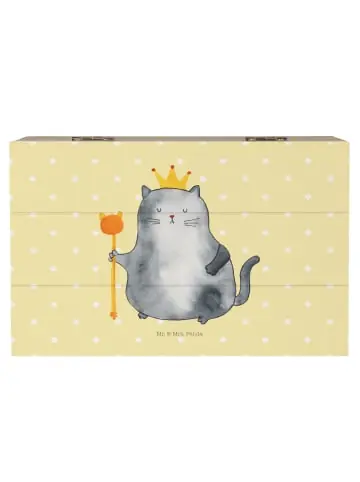 Diese liebevoll illustrierte Holzkiste „Katzen König“ aus der Katzen – Kollektion von Mr. & Mrs. Panda ist mehr als nur eine Box – sie ist ein kleiner Thron für deine schönsten Erinnerungen. Das entzückende Katzenmotiv mit Krönchen strahlt Charme, Humor und Katzenstolz aus und macht die Kiste zur perfekten Geschenkidee für alle Katzenliebhaberinnen und Katzenfans. Ob als Erinnerungskiste für Fotos und Andenken, als Schmuckkiste oder als stilvolle Geschenkbox zum Einzug in die erste eigene Wohnung: diese Kiste verbindet Funktionalität mit liebevoller Katzendeko.Sie ist besonders stabil, einfach zu öffnen und wiederverwendbar – ideal für alle, die nachhaltige Geschenkverpackungen schätzen. Die Pastell-Gelb Hintergrundfarbe fügt sich harmonisch in viele Einrichtungsstile ein und setzt einen warmen, freundlichen Akzent. Als praktische Aufbewahrungsbox findet sie im Regal, auf dem Nachttisch oder in der Kommode ihren Platz und bewahrt kleine Schätze sicher auf. Die Kiste ist nicht personalisierbar und nicht abschließbar, dafür aber voller Charakter und Geschichten.- Perfektes Geschenk für Katzenfans, Einzug, Umzug, Geburtstage und besondere Anlässe – Vielseitig nutzbar als Erinnerungskiste, Schmuckkiste, Fotobox oder Geschenkbox – Wiederverwendbar und besonders stabil für den Alltag – Liebevolles, handgezeichnetes Katzenmotiv aus der Mr. & Mrs. Panda Manufaktur – Pflegeleicht: vorsichtig mit feuchtem Tuch abwischen – Nicht personalisierbar und nicht abschließbar