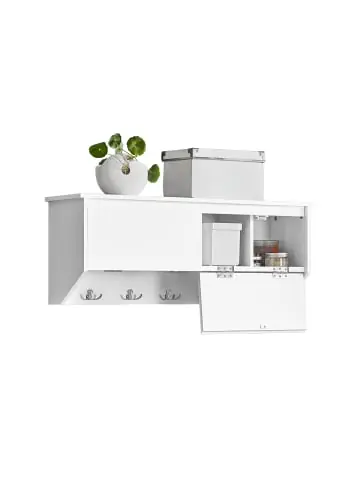 Die Wandgarderobe mit Aufbewahrungsboxen und Garderobenhaken bringt Ordnung in jeden Flur. Durch das schlichte Design könnten Sie die Garderobe in jedem Raum nutzen. Ideal für Flur, Bad oder auch Küche Sie können diese Wandgarderobe mit den Schuhschrank (FSR105-W) als Set kombinieren.Gewicht: ca.8,4kg; Belastbarkeit: bis 25kg; Material: MDF(E1).