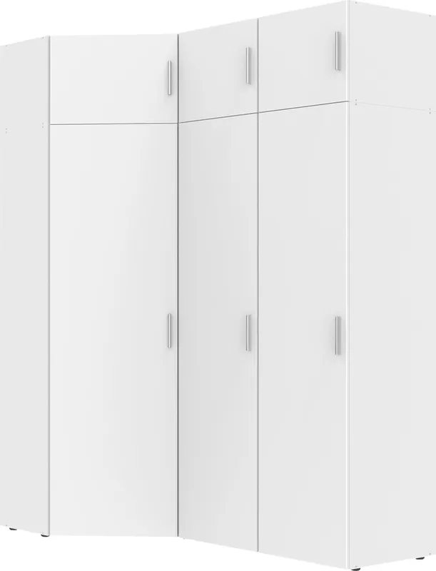 Individuelle Ecklösung- Kombinationsmöglichkeit. Inklusive Aufsatzmodule. Beschläge aus Metall. Innendekor Line grey. Made in Germany