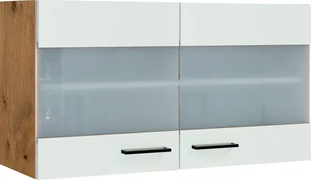 Glastüren-Hängeschrank mit pflegeleichter Oberfläche von Flex-Well, Made in Germany. Für viel Stauraum. Metallgriff schwarz, einfache Montage. Günstiger Küchenschrank in guter Qualität. Schnelle Lieferzeit bis in die Wohnung