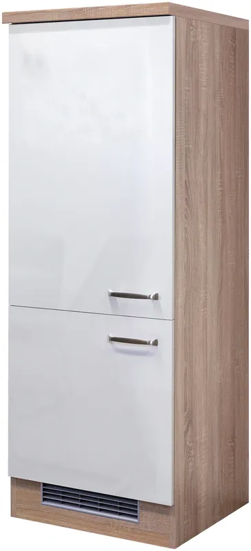 Demi-Kühlumbauschrank mit pflegeleichter Oberfläche von Flex-Well, Made in Germany. Türanschlag frei wählbar. Mit 38 mm starker Arbeitsplatte, Metallgriff. Günstiger Küchenschrank in guter Qualität. Schnelle Lieferzeit bis in die Wohnung