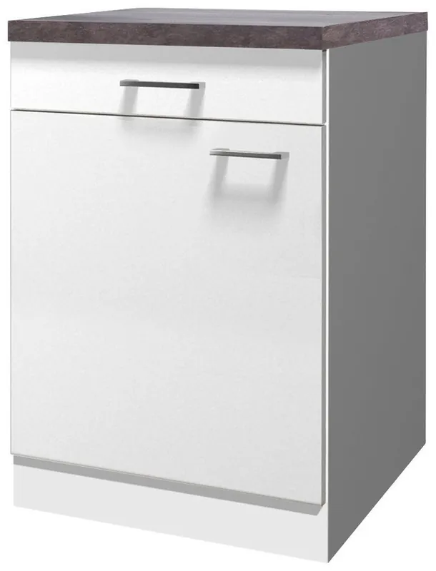 Küchenunterschrank mit pflegeleichter Oberfläche von Flex-Well, Made in Germany. Türanschlag frei wählbar. Mit 28 mm starker moderner Arbeitsplatte, moderner Griff. Günstiger Küchenschrank in guter Qualität. Schnelle Lieferzeit bis in die Wohnung