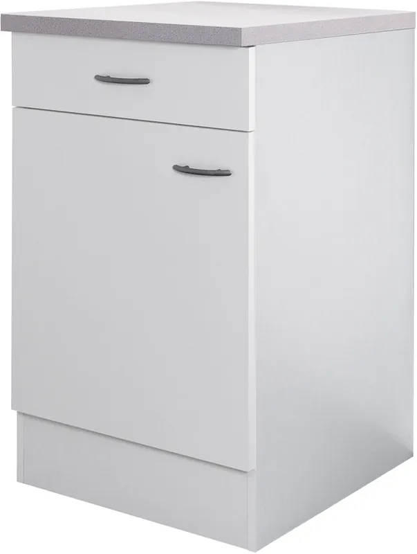 Küchenunterschrank mit pflegeleichter Oberfläche von Flex-Well, Made in Germany. Türanschlag frei wählbar. Moderner Griff, einfache Montage. Günstiges Mehrzweckmöbel in guter Qualität