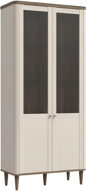 Diese moderne, breite Vitrine im Dekor Valencia Eiche kombiniert mit Sand bringt stilvolle Eleganz in Ihr Zuhause.. Hinter den beiden Türen mit edlem Glaseinsatz präsentieren Sie Ihre Lieblingsstücke gekonnt, während der geschlossene Bereich zusätzlichen Stauraum bietet.. Sechs Einlegeböden – zwei aus Holz, vieri aus Glas – bieten flexible Gestaltungsmöglichkeiten für Deko und Geschiss.. Optional erhältliche Beleuchtung setzt Ihre Lieblingsstücke perfekt in Szene.. Die hochwertigen Metallgriffe rundet das zeitlose Design harmonisch ab.