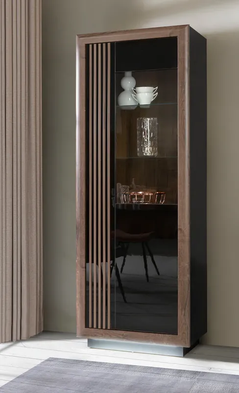 1 Glastüre. Push to open Funktion. Hochglanzoptik. inklusive Sockelbeleuchtung. Türanschlag rechts