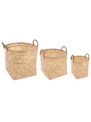 Bambuskorb mit bequemen Griffen – elegant geflochten und clever -Funktionalität. Set aus 3 Körben: dekorative geflochtene Körbe in drei verschiedenen Größen. Sie haben eine nicht triviale Form – unten sind sie Würfel, und oben sind sie belegt sind ein runder Rand.Hergestellt aus Bambus: Bambusgeflecht ist natürlich Material. Dieses Material ist sehr haltbar und resistent gegen Feuchtigkeit – der Korb dient Daher in vielen Räumen, auch in etwas feuchteren Räumen.Maße: Geflochtene Körbe gibt es in drei Größen. kleinste ist 20 cm hoch und hat einen Durchmesser von 20,5 cm. Der Durchschnitt ist 24,5 cm hoch und 30,5 cm im Durchmesser. Der größte von ihnen ist 30 cm hoch und hat einen Durchmesser von 36 cm.Griffe: Jeder der Körbe am oberen Rand ist ausgestattet mit zwei praktische Griffe, die zum Tragen verwendet werden können. Die Griffe sind so groß, dass Sie können sie problemlos nutzen, auch wenn Sie größere Hände. Die Höhe der Griffe beträgt 5 cm, 5,5 cm bzw. 6,5 cm – je nach die Größe des Korbs.Anwendung: Sie können in einem geflochtenen Korb jeden verstauen Du willst einfach nur. Der Korb eignet sich auch als Korb für Schmutz oder Sauberkeit Wäscherei.Dieses Produkt darf sicher und in der vom Hersteller vorgesehenen Weise verwendet werden und ausschließlich gemäß den Anweisungen, Empfehlungen, Warnungen oder Sicherheitsinformationen, die auf dem Produkt oder seiner Verpackung angebracht oder beigefügt sind.