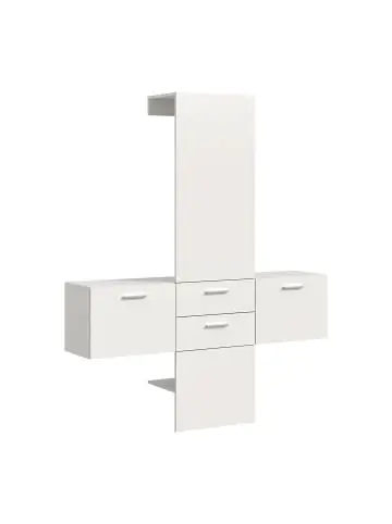 Das dreiteilige Vaga-Empfangsmöbel-Set ist eine praktische und stilvolle Lösung für den Eingangsbereich. Es besteht aus einem Hochschrank mit zwei Schubladen, Kleiderstange und praktischen Ablageflächen, flankiert von zwei Schuhwandschränken in verschiedenen Größen – ideal für große und kleine Eingangsbereiche.Die Wandschränke bieten nicht nur viel Stauraum, sondern werten mit ihrem hellen und modernen Look auch die Einrichtung auf. Die weiße Oberfläche schafft eine helle und ruhige Atmosphäre und passt zu den meisten Wohnräumen. Das Set besteht aus FSC®-Mix-zertifizierten Materialien (FSC-C170479), die für eine verantwortungsvolle Forstwirtschaft stehen.