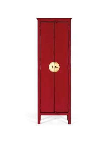 Schrank mit 2 Türen aus Mangoholz. Höhe: 180 cm. Länge: 60 cm. Breite: 35 cm. Material: Mangoholz. Farbe: Rot. Gewicht: 36 kg. Kartongröße: 180 x 60 x 35 cm. Naturholz und Handarbeit, daher mögliche Abweichungen in Farbe und Maserung. Wood