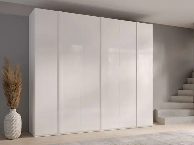 Home Affaire – Innovation & Design in jedem Einrichtungsstück. Der hohe Schrank mit einer Höhe von 237 cm bietet noch mehr Stauraum. Im Standard sind 5 Einlegeböden und 3 Kleiderstangen enthalten.. Der Hochglanz an den Fronten verleiht jedem Schlafzimmer Eleganz. Die Möglichkeit, zusätzliche Einlegeböden und einen Container zu erwerben, ermöglicht eine noch bessere Organisation im Schrank