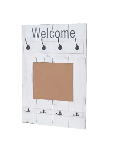 – Markeninhaber TÜV-Süd QM zertifiziert mit Nr. 12 100 59626 TMS für Qualitäts-Management in Deutschland – Lieferumfang: 1x Wandgarderobe – Lieferung erfolgt ohne Dekoration – BSCI-Sozialstandards geprüft – 4 große und 4 kleine Haken – Mit Pinnwand – Material: Paulowniaholz – Shabby-LookGesamtmaße (ca.):Höhe: 91 cmBreite: 60 cmTiefe (mit Kleiderhaken): 8 cmTiefe (ohne Kleiderhaken): 3 cm Hübsch hässlich, schick schäbig, Trash ist das neue Neu – und vor allem der allerletzte Schrei!! Wir präsentieren: den Shabby-Look. Die gebürstete Oberfläche verleiht jedem einzelnen unserer Shabby-Produkte einen ganz eigenen, individuellen Used-Look, der einerseits rustikal, andererseits aber auch spielerisch leicht wirkt und sich somit nahtlos in jede Umgebung einfügt, es aber auch schafft Akzente zu setzen. Ihrer Kreativität sind hier keinerlei Grenzen gesetzt. Der Hersteller ist erfolgreich BSCI-geprüft. Dabei wird der Hersteller verpflichtet, sich an soziale Standards zu halten. Geprüft werden: Managementpraxis, keine bedenkliche Beschäftigung, Arbeitszeit, Vergütung, Kinderarbeit, Zwangsarbeit (einschließlich Gefangenenarbeit und Zwangsmaßnahmen), Versammlungsfreiheit (inklusive Organisationsfreiheit und Tariffreiheit), Diskriminierung (Geschlecht, Religion), Arbeitsbedingungen, Gesundheits- und Sozialeinrichtungen, Gesundheit und Sicherheit am Arbeitsplatz (Arbeitssicherheit), Aspekte des Umweltschutzes und besonderen Schutz junger Angestellter. Auditor: HKQAA, DBID: 351271, Audit Id: 109724 Sie wünschen von einer Wand mehr als nur Ihr Haus zusammen zu halten? Mit dieser Wandgarderobe können Sie jede Wand praktisch und dekorativ aufwerten! Durch den Shabby-Look wirkt jeder Flur, jede Diele oder auch das Schlafzimmer viel wohnlicher. Acht Haken machen es möglich, Ihre Kleidung schnell greifbar und übersichtlich platzsparend unterzubringen. An der praktischen Pinnwand können Sie auch gleich noch Ihre wichtigsten Notizen befestigen, damit Sie keinen Termin mehr vergessen. Darüber hinaus ist diese hübsche Wandgarderobe mit vielen weiteren Artikeln unserer Shabby-Serie kombinierbar.Versandzustand: Teilmontiert–Sicherheitshinweise für Teilartikel mit Artikelnummer 61925 Dieser Artikel ist eine Wandgarderobe und sollte nur als solche verwendet werden. Der Artikel ist nur für den Innenbereich geeignet. Überladen Sie den Artikel nicht. Vorsicht: Verletzungsgefahr! Beim Bohren in Wand oder Decke auf Kabel, Rohre sowie Gas- und Wasser-leitungen achten!Vorsicht Erstickungsgefahr! Verpackungsmaterial, wie Plastikbeutel, gehören nicht in Kinderhände. Bitte von Babys und Kleinkindern fernhalten! Nicht über den Kopf ziehen! Vorsicht: Verschluckungsgefahr! Achtung dieser Artikel kann verschluckbare Kleinteile enthalten! Halten Sie die Kleinteile von Kindern fern! Prüfen Sie den Artikel regelmäßig alle 3-6 Monate auf Beschädigungen und gelöste Verbindungen. Ziehen Sie lose Schrauben wieder fest an! Sollten Beschädigungen entdeckt werden, darf der Artikel nicht mehr genutzt werden! Benutzen Sie diesen Artikel nur für die bestimmungsgemäße Verwendung, im technisch einwandfreien Zustand und für private Zwecke. Andere Verwendungen gelten als nicht bestimmungsgemäß und können zu schweren Verletzungen und Beschädigungen führen. Für aus bestimmungswidriger Verwendung entstandene Schäden übernimmt der Hersteller keine Haftung.Allgemeine Hinweise: Bitte lesen Sie alle Hinweise sorgfältig durch, bevor Sie den Artikel aufbauen und verwenden. Verwahren Sie die alle Sicherheitsinformationen und Aufbauanleitungen gut auf. Für Ihre eigene Sicherheit und die Ihres Produktes, befolgen Sie bitte die Sicherheitshinweise. Eine falsche Handhabung könnte zu ernsten Verletzungen, beschädigtem Eigentum oder sogar dem Tod hinauslaufen.Pflegehinweise: Saugen Polstermöbel regelmäßig ab. Hat der Artikel einen Bezug pflegen und reinigen Sie diesen entsprechend nach Material (Textil, Leder, Kunstleder). Besteht ihr Möbel aus Holz nutzen Sie einen Staubwedel zur Reinigung. Für alle anderen Oberflächen und bei stärkerem Schmutz können Sie ein nebelfeuchtes Baumwolltuch verwenden. Keinesfalls sollten Sie scharfe oder scheuernde Reiniger verwenden, diese können Schäden verursachen. Für Möbel im Bad: Wasser und Kondenswasser sofort abwischen! Entsorgungshinweise: Entsorgen Sie den Artikel umweltgerecht. Überlegen Sie Alternativen zu Entsorgung wie Spenden oder Verkaufen. Elektrische Artikel gehören nicht in den Hausmüll. Entsorgen Sie diese an einem Recyclinghof für elektrische und elektronische Altgeräte, weitere Informationen erhalten Sie bei Ihrer örtlichen Gemeindeverwaltung. Einlagerungshinweise: Der Artikel sollte trocken und sauber sein, verwahren Sie diesen geschützt in dem Karton in dem er geliefert wurde.