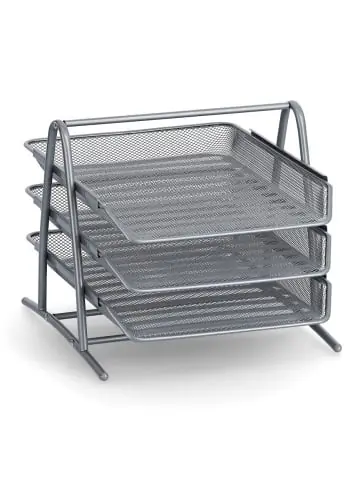 Gestapeltes Dokumentenfach aus Metallgitter – praktische Aufbewahrungslösung in Grau Gestapeltes Dokumentenfach aus Metallgitter: Dieses praktische Aufbewahrungsfach ist die ideale Lösung, um Ihre Dokumente und Unterlagen ordentlich zu organisieren. Robustes Metallmaterial: Das Gestell besteht aus hochwertigem Metall, das für Stabilität und Langlebigkeit sorgt. Sie können sich darauf verlassen, dass dieses Fach Ihnen lange Zeit dienen wird. Platzsparendes Design: Mit Abmessungen von ca. 35,5 x 29,5 x 27 cm bietet dieses gestapelte Dokumentenfach ausreichend Platz für Ihre Unterlagen, ohne dabei viel Platz einzunehmen. Einfache Montage: Der Artikel wird zerlegt geliefert, lässt sich jedoch mühelos und schnell zusammenbauen. So haben Sie im Handumdrehen eine praktische Aufbewahrungslösung zur Hand. Vielseitig einsetzbar: Verwenden Sie das Dokumentenfach nicht nur im Büro, sondern auch zu Hause oder in anderen Räumen, um Ihre Papiere und Unterlagen ordentlich zu verstauen.
