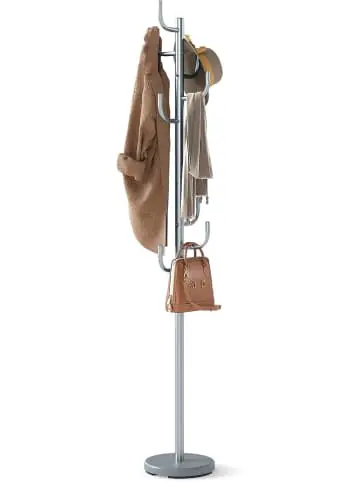 Beschreibung: Halten Sie Ihren Raum mit diesem stilvollen 8-Haken-Kaktus-Garderobenständer ordentlich und aufgeräumt. Die 8 versetzt angeordneten Haken bieten mühelosen Halt für Taschen, Hüte, Schals, Regenschirme und Mäntel. Die gebogenen Enden mit Schutzkappen sorgen dafür, dass Ihre Kleidung nicht verrutscht oder beschädigt wird. Die stabile Metallkonstruktion mit gewichteter Basis garantiert festen Stand und langfristige Stabilität. Die verstellbare Höhe ermöglicht zwei Konfigurationen – 119 cm oder 175 cm – passend für unterschiedliche Bedürfnisse. Ideal für kleine Räume, verleiht dieser moderne, kaktus-inspirierte Ständer mit durchdachten Details Fluren, Schlafzimmern oder Büros Charme und Funktionalität.Eigenschaften: 8 versetzt angeordnete Haken für vielseitige Aufbewahrung Gebogene Haken verhindern Abrutschen der Kleidung Abgerundete Ecken schützen die Kleidung vor Beschädigung Schwerlast-Metallrahmen sorgt für langlebige Robustheit Gewichtete Basis bietet ausgezeichnete Stabilität Abnehmbare Stange ermöglicht verstellbare Höhen Schnelle und einfache Montage spart Zeit und Mühe Kleiner Platzbedarf spart Platz in jedem Raum Stilvoller Garderobenständer bereichert Flur- und Bürodekoration Material: Metall Gesamtmaße: 27 x 119 / 175 cm (Durchmesser x Höhe) Tragfähigkeit pro Haken: 1,5 kg Gewicht: 4 kgLieferungsumfang: 1 x Garderobenständer 1 x Anleitung