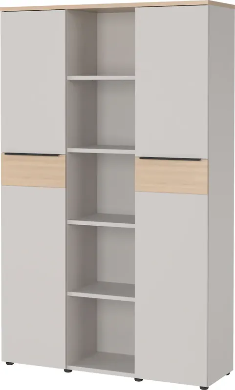 Kratzfeste und widerstandsfähige Oberflächenbeschichtung. Mit offenen und geschlossenen Fächern. Türdämpfung. Kantengriffe aus Metall. Made in Germany