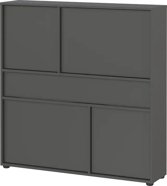 Maße (B x T x H): 105 x 25 x 108 cm. Verstellbare Einlegeböden zur individuellen Gestaltung. Push-to-open Technik für sanftes Öffnen und Schließen bei leichtem Druck. Kratzfeste und widerstandsfähige Oberflächenbeschichtung. Made in Germany