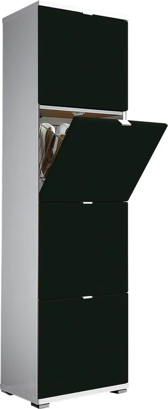 Metallschuhkörbe mit Platz für bis zu 16 Paar Schuhe. Kantengriffe aus Metall. Hochwertige ABS-Kanten. Made in Germany