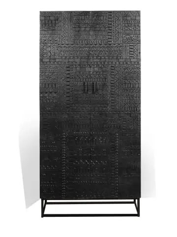 Kleiderschrank aus Mangoholz mit Metallgestell. Türmaße: 166 x 45 cm. Innenregalhöhe: 30 cm. Kleiderstangenhöhe: 90 cm. Fußhöhe: 16 cm. Gewicht: 77 kg. Wood