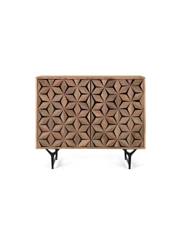 Dieses zweitürige Sideboard kombiniert Mangoholz mit Metall und bietet ausreichend Stauraum für Geschirr und andere Gegenstände. Metallbeine sorgen für Stabilität und eine moderne Note, ideal für jeden Ess- oder Unterhaltungsbereich. Wood
