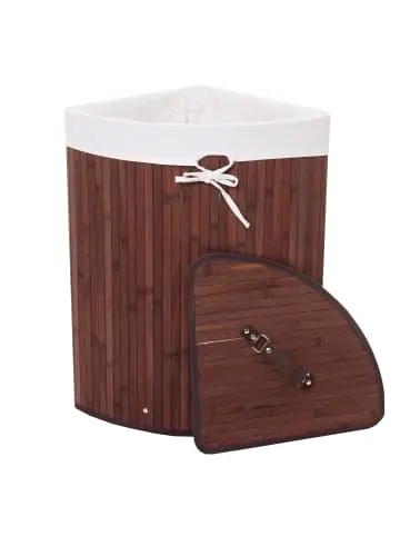– Markeninhaber TÜV-Süd QM zertifiziert mit Nr. 12 100 59626 TMS für Qualitäts-Management in Deutschland – Nutzbare 50 Liter Innenraum – Lieferumfang: 1x Wäschekorb inkl. Deckel – Füllmenge (ca.): 50l – Mit Bodeneinsatz – Herausnehmbarer Wäschesack – Metallrahmen zur Stabilisierung – Kann platzsparend in der Ecke aufbewahrt werden- Praktisch und dekorativ – dieser Wäschekorb vereint spielerisch beide Eigenschaften. Mit einem herausnehmbaren Wäschesack und 50 Liter Fassungsvermögen ausgestattet, lässt diese Eck-Wäschebox keine Wünsche offen.- Schluss mit rumliegender Wäsche! Diese moderne Wäschetruhe hilft Ihnen schmutzige Wäsche ordentlich und sauber zu verstauen. Gleichzeitig lassen sich durch die herausnehmbaren Wäschesäcke Kleidungsstücke im Handumdrehen sortieren. Maße (ca.):Höhe: 61 cmBreite: 48 cmTiefe: 35 cm Material:Korb: BambusWäschesack: 53% Polyester, 30% Baumwolle, 17% Viskose HINWEIS zum Volumen:Wir geben Ihnen die nutzbaren Liter an. Viele Anbieter geben angebliche Liter an, die bestenfalls ein Außenvolumen darstellen – darin wären dann aber sogar Griffe und heraus stehende Deckel integriert. Das ist für Sie nicht nutzbar. Von einer derart geschönten Darstellung nehmen wir Abstand. Dieser schicke Wäschekorb erfüllt drei Aufgaben in einem, er ist praktisch, dekorativ und dank der Fertigung aus Bambus auch noch ökologisch gut verträglich. Ausgestattet mit einem herausnehmbaren Bodeneinsatz und einem ebensolchen Metallrahmen hat der faltbare Korb einen stabilen Stand. Der zugehörige Wäschesack ist bequem am Korb zu befestigen und sorgt zusätzlich dafür, dass Ihnen kein Wäschestück verloren geht. Die beiden seitlichen Tragegriffe verhelfen zu einem leichten und problemlosen Transport. Wer nicht nur irgendeinen Wäschekorb möchte, sondern einen zugleich nützlichen und optisch ansprechenden Haushaltshelfer, hat hier genau das Richtige gefunden.Versandzustand: Zerlegt–Sicherheitshinweise für Teilartikel mit Artikelnummer 61140 Dieser Artikel ist eine Wäschtruhe / ein Wäschekorb und sollte nur als solcher verwendet werden. Der Artikel ist nur für den Innenbereich geeignet. Überladen Sie den Artikel nicht. Vorsicht: Verletzungsgefahr! Setzen, stellen oder stützen Sie sich nicht auf den Artikel. Vorsicht: Kippgefahr & Verletzungsgefahr! Sorgen Sie immer für einen festen Stand des Artikels.Vorsicht Erstickungsgefahr! Verpackungsmaterial, wie Plastikbeutel, gehören nicht in Kinderhände. Bitte von Babys und Kleinkindern fernhalten! Nicht über den Kopf ziehen! Vorsicht: Verschluckungsgefahr! Achtung dieser Artikel kann verschluckbare Kleinteile enthalten! Halten Sie die Kleinteile von Kindern fern! Prüfen Sie den Artikel regelmäßig alle 3-6 Monate auf Beschädigungen und gelöste Verbindungen. Ziehen Sie lose Schrauben wieder fest an! Sollten Beschädigungen entdeckt werden, darf der Artikel nicht mehr genutzt werden! Benutzen Sie diesen Artikel nur für die bestimmungsgemäße Verwendung, im technisch einwandfreien Zustand und für private Zwecke. Andere Verwendungen gelten als nicht bestimmungsgemäß und können zu schweren Verletzungen und Beschädigungen führen. Für aus bestimmungswidriger Verwendung entstandene Schäden übernimmt der Hersteller keine Haftung.Allgemeine Hinweise: Bitte lesen Sie alle Hinweise sorgfältig durch, bevor Sie den Artikel aufbauen und verwenden. Verwahren Sie alle Sicherheitsinformationen und Aufbauanleitungen gut auf. Für Ihre eigene Sicherheit und die Ihres Produktes, befolgen Sie bitte die Sicherheitshinweise. Eine falsche Handhabung könnte zu ernsten Verletzungen, beschädigtem Eigentum oder sogar dem Tod hinauslaufen.Pflegehinweise: Saugen Sie die Polstermöbel regelmäßig ab. Hat der Artikel einen Bezug pflegen und reinigen Sie diesen entsprechend nach Material (Textil, Leder, Kunstleder). Besteht ihr Möbel aus Holz nutzen Sie einen Staubwedel zur Reinigung. Für alle anderen Oberflächen und bei stärkerem Schmutz können Sie ein nebelfeuchtes Baumwolltuch verwenden. Keinesfalls sollten Sie scharfe oder scheuernde Reiniger verwenden, diese können Schäden verursachen. Für Möbel im Bad: Wasser und Kondenswasser sofort abwischen! Entsorgungshinweise: Entsorgen Sie den Artikel umweltgerecht. Überlegen Sie Alternativen zu Entsorgung wie Spenden oder Verkaufen. Elektrische Artikel gehören nicht in den Hausmüll. Entsorgen Sie diese an einem Recyclinghof für elektrische und elektronische Altgeräte, weitere Informationen erhalten Sie bei Ihrer örtlichen Gemeindeverwaltung. Einlagerungshinweise: Der Artikel sollte trocken und sauber sein, verwahren Sie diesen geschützt in dem Karton in dem er geliefert wurde.
