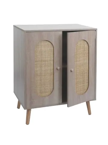 – Markeninhaber TÜV-Süd QM zertifiziert mit Nr. 12 100 59626 TMS für Qualitäts-Management in Deutschland – Türen mit handgefertigtem natürlichen Kubu Rattan – Oberfläche mit Melamin-Beschichtung besonders kratzfest, wasserfest – Soft-Close-System – Mit zwei Türen – Zwei Ablagefächer – Stabile Füße aus Massivholz – Großzügiger Stauraum – Lieferung erfolgt ohne Dekoration- Diese Kommode besticht durch ihre einzigartige Türoberfläche im Rattan-Design, die Ihrem Raum einen modernen und eleganten Look verleiht. Dank den zwei Staufächern und zwei Türen ist genügend Raum für Ihre alltäglichen Gegenstände vorhanden.- Der Schrank fügt sich in fast jedes Ambiente ein und darf in keinem Wohnzimmer fehlen. Er lässt sich sehr gut mit den weiteren Möbeln aus dieser Serie kombinieren. Maße (HxBxT) (ca.):Gesamt: 86x68x40 cmTiefe innen: 36,5 cmHöhe der Füße: 16 cm Material:Gestell: MDF aus Pappelholz mit MelaminoberflächeTüre: Pappelholz, handgefertigtem natürlichem Kubu RattanFuß: Massivholz aus PappelholzGriff: Pappelholz Verleihen Sie Ihrem Interieur einen Hauch von Eleganz und Natürlichkeit mit unserer exquisiten Kommode, einem Meisterwerk, das Funktionalität und stilvolles Design nahtlos vereint. Dieses Möbelstück, geschickt konzipiert als Schrank, ist nicht nur ein vielseitiger Stauraum, sondern auch ein Statement-Piece, das jede Einrichtung veredelt. Gefertigt aus echtem Kubu Rattan in Kombination mit einer edlen Eiche-Optik, spiegelt es die Schönheit der Natur wider und bringt eine warme, einladende Atmosphäre in Ihr Zuhause. Das angesagte Design der Türoberfläche, kunstvoll gearbeitet in Kubu Rattan, verleiht jedem Raum ein modernes Flair und unterstreicht Ihre Affinität zu exklusivem und nachhaltigem Wohnstil. Dank des innovativen Soft-Close-Systems gehören laute Türgeräusche der Vergangenheit an die Türen schließen sanft und leise, was den Komfort im täglichen Gebrauch erhöht und zur Langlebigkeit des Möbelstücks beiträgt. Hinter den zwei sorgfältig verarbeiteten Türen verbirgt sich ein geräumiges Inneres mit zwei Ablagefächern. Diese bieten Ihnen reichlich Platz, um alles von Geschirr über Bücher bis hin zu Dekorationsartikeln ordentlich und griffbereit zu verstauen. Die stabile Konstruktion garantiert, dass dieses Sideboard Sie über Jahre hinweg begleiten wird, ohne an Schönheit oder Funktionalität einzubüßen. Ihre stabile Konstruktion verspricht Langlebigkeit, während das zeitlose Design sicherstellt, dass sie nie aus der Mode kommt. Obwohl sie ohne Dekoration geliefert wird, bietet sie die perfekte Leinwand, um Ihrer Kreativität freien Lauf zu lassen und Ihren persönlichen Stil zum Ausdruck zu bringen. Kubu Rattan Möbel vereinen Eleganz, Praktikabilität und Nachhaltigkeit. Ihre natürliche Farbe passt zu vielen Einrichtungsstilen, während Robustheit und Leichtigkeit eine flexible Raumgestaltung ermöglichen. Diese Möbel sind nicht nur aufgrund ihres Designs, sondern auch wegen ihrer Umweltfreundlichkeit – als schnell nachwachsende Ressource – eine ausgezeichnete Wahl. Die Pflege ist einfach, was ihre Langlebigkeit sichert.Versandzustand: Teilmontiert–Sicherheitshinweise für Teilartikel mit Artikelnummer 104205 Dieser Artikel ist ein Schrank und sollte nur als solcher benutzt werden. Der Artikel ist nur für den Innenbereich geeignet. Überladen Sie den Artikel nicht. Vorsicht: Verletzungsgefahr! Setzen, stellen oder stützen Sie sich nicht auf den Artikel.Vorsicht Erstickungsgefahr! Verpackungsmaterial, wie Plastikbeutel, gehören nicht in Kinderhände. Bitte von Babys und Kleinkindern fernhalten! Nicht über den Kopf ziehen! Vorsicht: Verschluckungsgefahr! Achtung dieser Artikel kann verschluckbare Kleinteile enthalten! Halten Sie die Kleinteile von Kindern fern! Prüfen Sie den Artikel regelmäßig alle 3-6 Monate auf Beschädigungen und gelöste Verbindungen. Ziehen Sie lose Schrauben wieder fest an! Sollten Beschädigungen entdeckt werden, darf der Artikel nicht mehr genutzt werden! Warnung: Kippgefahr, Unfallgefahr und Verletzungsgefahr!Ein Möbelstück, das nicht an der Wand befestigt wird, kann wenn es umfällt ein Kind oder einen Erwachsenen schwerwiegend oder sogar tödlich verletzen. Befestigen Sie daher alle Möbel mit Winkeln oder speziellen Kippschutzen (teilweise nicht im Lieferumfang enthalten) an der Wand. Achten Sie dabei immer auf mögliche Kabel oder Rohre die in der Wand verlegt sein können.Benutzen Sie diesen Artikel nur für die bestimmungsgemäße Verwendung, im technisch einwandfreien Zustand und für private Zwecke. Andere Verwendungen gelten als nicht bestimmungsgemäß und können zu schweren Verletzungen und Beschädigungen führen. Für aus bestimmungswidriger Verwendung entstandene Schäden übernimmt der Hersteller keine Haftung.Allgemeine Hinweise: Bitte lesen Sie alle Hinweise sorgfältig durch, bevor Sie den Artikel aufbauen und verwenden. Verwahren Sie alle Sicherheitsinformationen und Aufbauanleitungen gut auf. Für Ihre eigene Sicherheit und die Ihres Produktes, befolgen Sie bitte die Sicherheitshinweise. Eine falsche Handhabung könnte zu ernsten Verletzungen, beschädigtem Eigentum oder sogar dem Tod hinauslaufen.Pflegehinweise: Verwenden Sie eine weiche Bürste um losen Schmutz zu entfernen. Benutzen Sie niemals Waschmittel oder andere Putzmittel, um den Bezug zu reinigen. Entsorgungshinweise: Entsorgen Sie den Artikel umweltgerecht. Überlegen Sie Alternativen zu Entsorgung wie Spenden oder Verkaufen. Elektrische Artikel gehören nicht in den Hausmüll. Entsorgen Sie diese an einem Recyclinghof für elektrische und elektronische Altgeräte, weitere Informationen erhalten Sie bei Ihrer örtlichen Gemeindeverwaltung. Einlagerungshinweise: Der Artikel sollte trocken und sauber sein, verwahren Sie diesen geschützt in dem Karton in dem er geliefert wurde.
