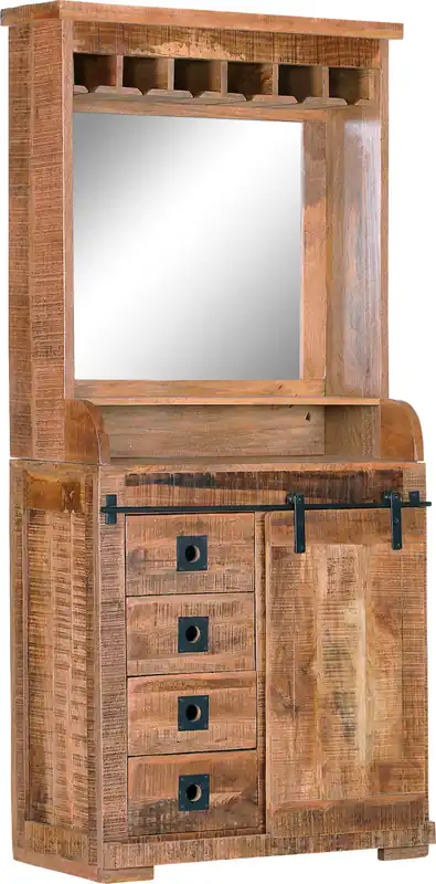 Kommode mit Buffetaufsatz. Aufsatz mit Spiegel und 6 Glashalter. aus Massivholz. in hochwertiger Verarbeitung. in angesagtem Industrial Look