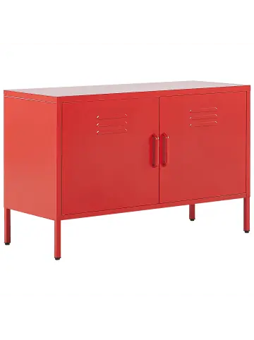 Modernes TV-Lowboard aus Metall mit 2 geräumigen Schränken. Ihr organisatorisches Wunder für Zuhause. Dank seiner robusten Verarbeitung aus kaltgewalztem Stahl und schönen, einfachen Form eignet sich das Möbel hervorragend als TV-Schrank, schmückende Kommode oder Flurschrank. Hinter den 2 geräumigen Schränken verbirgt sich ein breiter Regalboden, der wie geschaffen für Ihren Decoder oder DVD-Player ist. Hier können Sie auch Dokumente, Bücher und andere Kleinigkeiten wunderbar verstauen, vor neugierigen Blicken, Sonne und Staub schützen. Da der Metallschrank eine sehr leicht zu pflegende Oberfläche hat und mit Untersetzern versehen ist, kann er in jedem Wohnraum platziert werden.Details: Typ: Büroschränke Farbe: Rot Material: Stahl Gestellmaterial: Metall Anzahl Einlegeböden: 2 Türöffnungsarten: Standard Schubladen: Nein Finish: E-Coating Abschliessbar: Nein Türanzahl: 2 Regalböden: JaDimensions: Tiefe: 40 cm Breite: 100 cm Höhe: 65 cm Gewicht: 18 kg Max. Belastung pro Fach: 30 kg Max. Belastung der Oberplatte: 50 kgSie kaufen: 1 x SideboardProduktvorteile: Zeitloses Design, Stabile und solide Konstruktion, Perfekt geeignet für alle Wohn- und Arbeitsbereiche, Praktischer, großer Stauraum, Schutzkappen zum Schutz des Bodens, Lüftungsschlitze für konstanten LuftaustauschMontage: Nicht montiert. 20 – 40 Min.Pflegeanleitung:Stahl: 1.Bitte ausschließlich handelsübliche, milde Reinigungsmittel und weiche Tücher verwenden, wobei feuchte Stellen sofort trocken gerieben werden sollten 2.Vermeiden Sie scheuernde Reiniger, da diese die Oberfläche beschädigen können 3.Bei Chrom und Kupfer regelmäßig mit speziellen Pflegemitteln polieren.