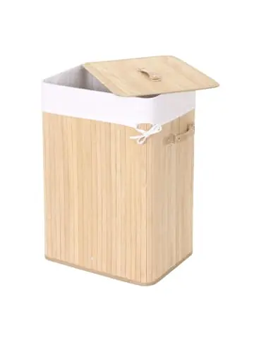 – Markeninhaber TÜV-Süd QM zertifiziert mit Nr. 12 100 59626 TMS für Qualitäts-Management in Deutschland – Nutzbare 70 Liter Innenraum (und nicht Außenvolumen) – Lieferumfang: 1x Wäschekorb inkl. Deckel – Füllmenge (ca.): 70l – Mit Bodeneinsatz – Herausnehmbarer Wäschesack – Metallrahmen zur Stabilisierung – Mit Tragegriffen- Mit einem Fassungsvermögen von ca. 70 Litern ist der Wäschekorb die ideale Lösung für Ihre tägliche Wäscheorganisation. Der Metallrahmen sorgt für Formstabilität, während der integrierte Bodeneinsatz zusätzliche Standfestigkeit garantiert.- Der herausnehmbare Wäschesack ermöglicht ein schnelles und unkompliziertes Transportieren der Wäsche – hygienisch, effizient und zeitsparend. Zwei seitlich angebrachte Tragegriffe sorgen für komfortablen Transport, auch wenn der Korb gefüllt ist. Maße (ca.):Höhe: 61 cmBreite: 43 cmTiefe: 32 cm Material:Korb: BambusWäschesack: 53% Polyester, 30% Baumwolle, 17% Viskose HINWEIS zum Volumen:Wir geben Ihnen die nutzbaren Liter an. Viele Anbieter geben angebliche Liter an, die bestenfalls ein Außenvolumen darstellen – darin wären dann aber sogar Griffe und heraus stehende Deckel integriert. Das ist für Sie nicht nutzbar. Von einer derart geschönten Darstellung nehmen wir Abstand. Dieser schicke Wäschekorb erfüllt drei Aufgaben in einem, er ist praktisch, dekorativ und dank der Fertigung aus Bambus auch noch ökologisch gut verträglich. Ausgestattet mit einem herausnehmbaren Bodeneinsatz und einem ebensolchen Metallrahmen hat der faltbare Korb einen stabilen Stand. Der zugehörige Wäschesack ist bequem am Korb zu befestigen und sorgt zusätzlich dafür, dass Ihnen kein Wäschestück verloren geht. Die beiden seitlichen Tragegriffe verhelfen zu einem leichten und problemlosen Transport. Wer nicht nur irgendeinen Wäschekorb möchte, sondern einen zugleich nützlichen und optisch ansprechenden Haushaltshelfer, hat hier genau das Richtige gefunden.Versandzustand: Zerlegt–Sicherheitshinweise für Teilartikel mit Artikelnummer 61146 Dieser Artikel ist eine Wäschtruhe / ein Wäschekorb und sollte nur als solcher verwendet werden. Der Artikel ist nur für den Innenbereich geeignet. Überladen Sie den Artikel nicht. Vorsicht: Verletzungsgefahr! Setzen, stellen oder stützen Sie sich nicht auf den Artikel. Vorsicht: Kippgefahr & Verletzungsgefahr! Sorgen Sie immer für einen festen Stand des Artikels.Vorsicht Erstickungsgefahr! Verpackungsmaterial, wie Plastikbeutel, gehören nicht in Kinderhände. Bitte von Babys und Kleinkindern fernhalten! Nicht über den Kopf ziehen! Vorsicht: Verschluckungsgefahr! Achtung dieser Artikel kann verschluckbare Kleinteile enthalten! Halten Sie die Kleinteile von Kindern fern! Prüfen Sie den Artikel regelmäßig alle 3-6 Monate auf Beschädigungen und gelöste Verbindungen. Ziehen Sie lose Schrauben wieder fest an! Sollten Beschädigungen entdeckt werden, darf der Artikel nicht mehr genutzt werden! Benutzen Sie diesen Artikel nur für die bestimmungsgemäße Verwendung, im technisch einwandfreien Zustand und für private Zwecke. Andere Verwendungen gelten als nicht bestimmungsgemäß und können zu schweren Verletzungen und Beschädigungen führen. Für aus bestimmungswidriger Verwendung entstandene Schäden übernimmt der Hersteller keine Haftung.Allgemeine Hinweise: Bitte lesen Sie alle Hinweise sorgfältig durch, bevor Sie den Artikel aufbauen und verwenden. Verwahren Sie die alle Sicherheitsinformationen und Aufbauanleitungen gut auf. Für Ihre eigene Sicherheit und die Ihres Produktes, befolgen Sie bitte die Sicherheitshinweise. Eine falsche Handhabung könnte zu ernsten Verletzungen, beschädigtem Eigentum oder sogar dem Tod hinauslaufen.Pflegehinweise: Saugen Polstermöbel regelmäßig ab. Hat der Artikel einen Bezug pflegen und reinigen Sie diesen entsprechend nach Material (Textil, Leder, Kunstleder). Besteht ihr Möbel aus Holz nutzen Sie einen Staubwedel zur Reinigung. Für alle anderen Oberflächen und bei stärkerem Schmutz können Sie ein nebelfeuchtes Baumwolltuch verwenden. Keinesfalls sollten Sie scharfe oder scheuernde Reiniger verwenden, diese können Schäden verursachen. Für Möbel im Bad: Wasser und Kondenswasser sofort abwischen! Entsorgungshinweise: Entsorgen Sie den Artikel umweltgerecht. Überlegen Sie Alternativen zu Entsorgung wie Spenden oder Verkaufen. Elektrische Artikel gehören nicht in den Hausmüll. Entsorgen Sie diese an einem Recyclinghof für elektrische und elektronische Altgeräte, weitere Informationen erhalten Sie bei Ihrer örtlichen Gemeindeverwaltung. Einlagerungshinweise: Der Artikel sollte trocken und sauber sein, verwahren Sie diesen geschützt in dem Karton in dem er geliefert wurde.